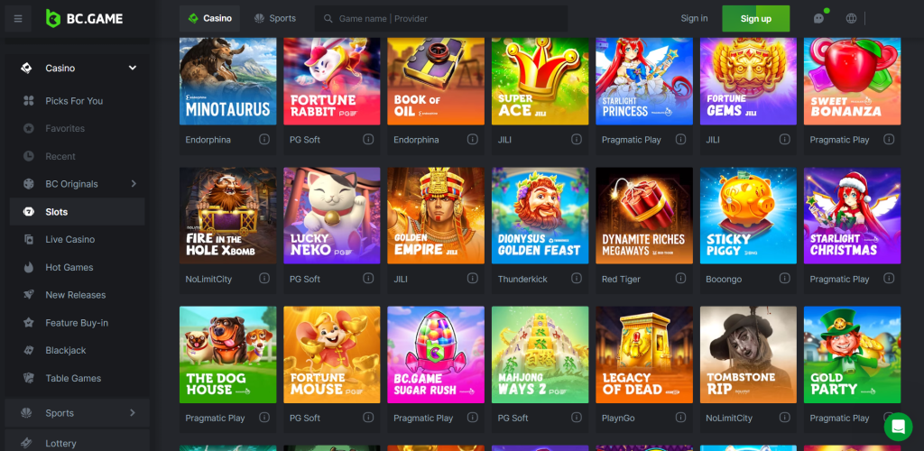 BC.Game предлагает около 1500 игр: слоты, live-казино и оригинальные игры BC, включая Crash, Dice, Plinko, Limbo, Baccarat и Blackjack. Каждый игрок найдёт что-то по вкусу!