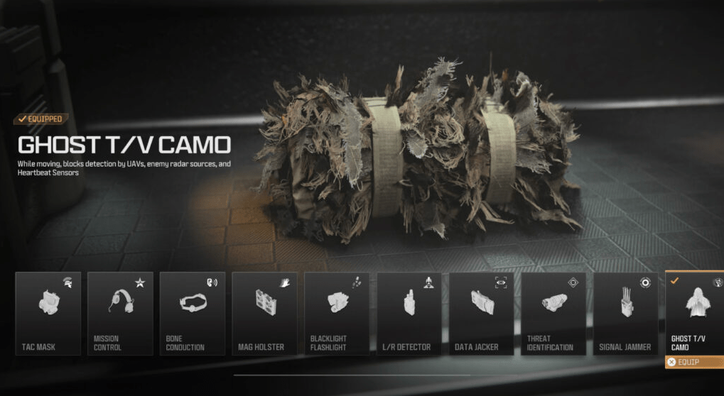 Для игроков, отдающих предпочтение скрытной сборке и комплекту, камуфляж Ghost T/V является исключительным выбором. Этот камуфляж предоставляет непревзойденные преимущества, эффективно блокируя обнаружение с помощью UAV, радаров врага и сенсоров сердцебиения. Надев камуфляж Ghost T/V, вы получаете значительное преимущество в сохранении скрытных операций. Оставаясь незаметным для UAV, вы можете эффективно перемещаться по полю боя, не раскрывая своего положения врагам. Это позволяет вам стратегически ориентироваться, обходить противников или устраивать засады с меньшим риском обнаружения и атаки. Кроме того, камуфляж Ghost T/V защищает вас от радаров врага, гарантируя, что ваши перемещения и присутствие останутся скрытыми. Это мешает противникам получать актуальную информацию о вашем местоположении, что дополнительно повышает вашу способность маневрировать незаметно и наносить удары с неожиданных углов.Кроме того, камуфляж Ghost T/V делает вас невидимым для сенсоров сердцебиения, лишая врагов возможности определять ваше приближение с помощью этой технологии. Это устраняет важный инструмент, который часто используют противники для обнаружения и отслеживания целей поблизости, предоставляя вам значительное преимущество в сохранении скрытности и опережении врагов. Внедрив камуфляж Ghost T/V в ваш комплект, вы создаете мощную скрытную сборку, которая позволяет вам действовать в тени, избегать обнаружения и наносить удары с точностью. Используйте преимущество быть призраком на поле боя, где ваши действия остаются скрытыми, а враги остаются в неведении.