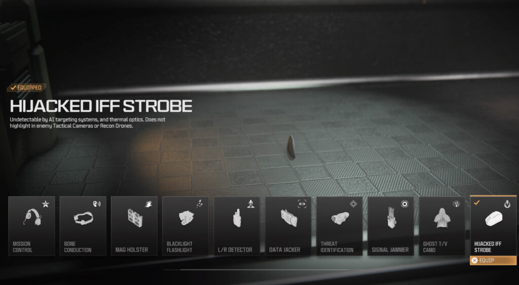 Включение стробоскопа Hijacked IFF в ваш комплект обеспечивает комплексное решение для оставаться незаметным для систем автоматического прицеливания, тепловых оптических приборов, тактических камер и разведывательных дронов. Это оборудование особенно полезно, если вы ориентируетесь на скрытную или снайперскую сборку. Стробоскоп Hijacked IFF гарантирует, что вы останетесь невидимым для систем автоматического прицеливания, предотвращая их обнаружение и нападение на вас как на угрозу. Это позволяет вам двигаться скрытно и выполнять задачи без привлечения нежелательного внимания автоматических систем защиты или врагов. Кроме того, это оборудование эффективно противостоит тепловым оптическим приборам, которые обычно используют для обнаружения тепловых сигнатур и определения скрытых или маскированных целей. Нейтрализуя эффективность теплового обнаружения, стробоскоп Hijacked IFF помогает сохранять вашу скрытность и усложняет врагам обнаружение вас по тепловым изображениям.Кроме того, стробоскоп Hijacked IFF не привлекает внимания и не выделяет ваше присутствие в тактических камерах или разведывательных дронах. Это обеспечивает, что ваши движения и положение остаются скрытыми от инструментов слежения врага, что дает вам значительное преимущество в избегании обнаружения и сохранении элемента неожиданности. Используя стробоскоп Hijacked IFF, вы создаете идеальную настройку для скрытной или снайперской сборки, позволяя вам действовать скрытно и наносить удары с точностью. Используйте преимущество оставаться в тени на поле боя, где ваши действия остаются скрытыми, а враги остаются в неведении.